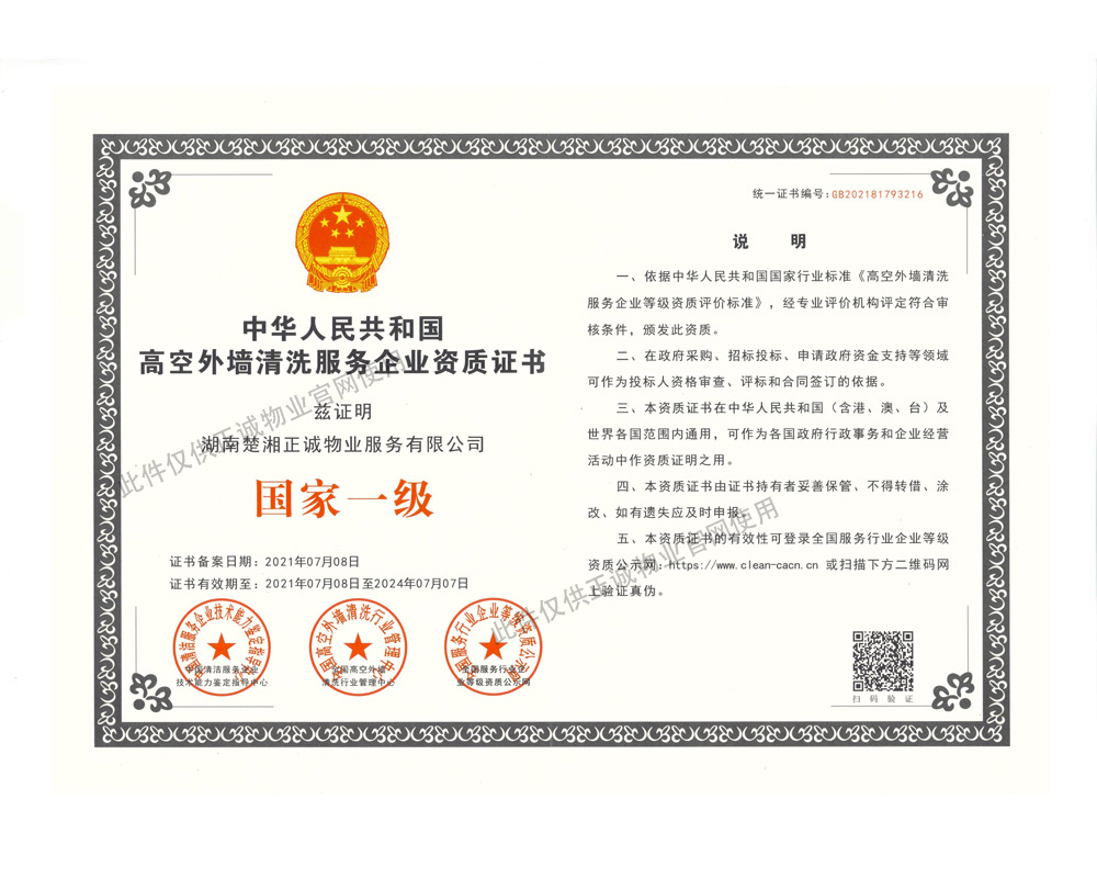 高空外墻清洗服務(wù)企業(yè)資質(zhì)證書