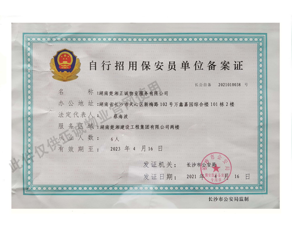 自行招用保安員單位備案證