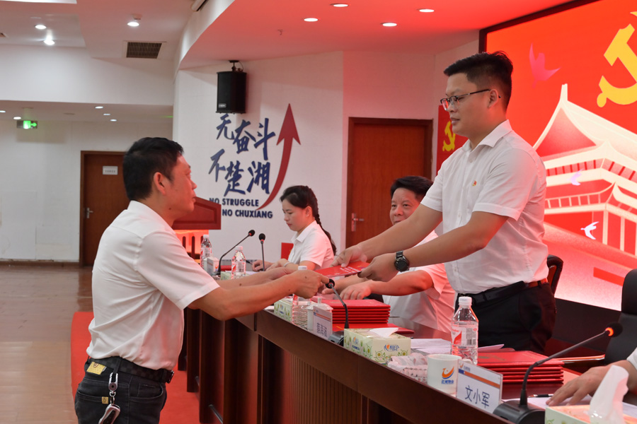 公司黨總支書記、執(zhí)行董事蔡海波作題為《黨建引領(lǐng)風(fēng)帆勁 砥礪前行闊步走,為公司經(jīng)營發(fā)展和諧穩(wěn)定提供堅(jiān)強(qiáng)政治保證》的主題報(bào)告,報(bào)告謳歌黨的豐功偉績(jī),回顧總結(jié)了2023年的各項(xiàng)工作:一是舉旗定向,政治建設(shè)縱深推進(jìn);二是固本強(qiáng)基,戰(zhàn)斗堡壘筑牢夯實(shí);三是謀篇布局,市場(chǎng)開拓穩(wěn)步推進(jìn);四融合賦能,國企擔(dān)當(dāng)彰顯有力;五是正風(fēng)肅紀(jì),政治生態(tài)持續(xù)向好;六是凝心聚力,和諧正誠深入構(gòu)建。并安排部署2024年各項(xiàng)重點(diǎn)工作:一要深化政治建設(shè),扛起政治責(zé)任;二要聚焦強(qiáng)基提能,筑強(qiáng)戰(zhàn)斗堡壘;三要深化黨建融合,做好“黨建+”文章;四要建強(qiáng)人才隊(duì)伍,激發(fā)干事活力;五要強(qiáng)化廉政建設(shè),涵養(yǎng)政治生態(tài);六要堅(jiān)持群團(tuán)賦能,凝聚發(fā)展合力。號(hào)召全體黨員干部拿出逢山開路的沖勁、闊勁和拼勁,不松氣、不泄氣,憋足一口氣,聚焦聚神聚力把各項(xiàng)工作抓實(shí)、抓好,共同繪制全年目標(biāo)任務(wù)的圓滿畫卷!以優(yōu)異的成績(jī)向集團(tuán)公司七十周年華誕獻(xiàn)禮! 黨總支委員、副總經(jīng)理王清明向大會(huì)作題為《強(qiáng)化紀(jì)律監(jiān)督 忠誠履職盡責(zé),以鐵的紀(jì)律護(hù)航公司發(fā)展行穩(wěn)致遠(yuǎn)》的紀(jì)檢工作報(bào)告。所屬各黨支書記向蔡書記遞交黨建工作目標(biāo)責(zé)任狀;黨總支委員、副總經(jīng)理?xiàng)钌盒x《關(guān)于表彰2023年度優(yōu)秀黨支部、優(yōu)秀黨務(wù)工作者、優(yōu)秀共產(chǎn)黨員的決定》;黨總支委員、副總經(jīng)理劉賽鳳宣讀《關(guān)于表彰2023年度先進(jìn)集體、先進(jìn)個(gè)人的決定》,對(duì)2個(gè)“先進(jìn)黨支部”、8名“優(yōu)秀共產(chǎn)黨員”、2名“優(yōu)秀黨務(wù)工作者”、5個(gè)“先進(jìn)集體”、2名“勞動(dòng)模范”、16名“先進(jìn)個(gè)人”進(jìn)行了表彰; 優(yōu)秀黨支部、先進(jìn)集體典型發(fā)言,公司領(lǐng)導(dǎo)為獲獎(jiǎng)單位和個(gè)人代表頒獎(jiǎng)。